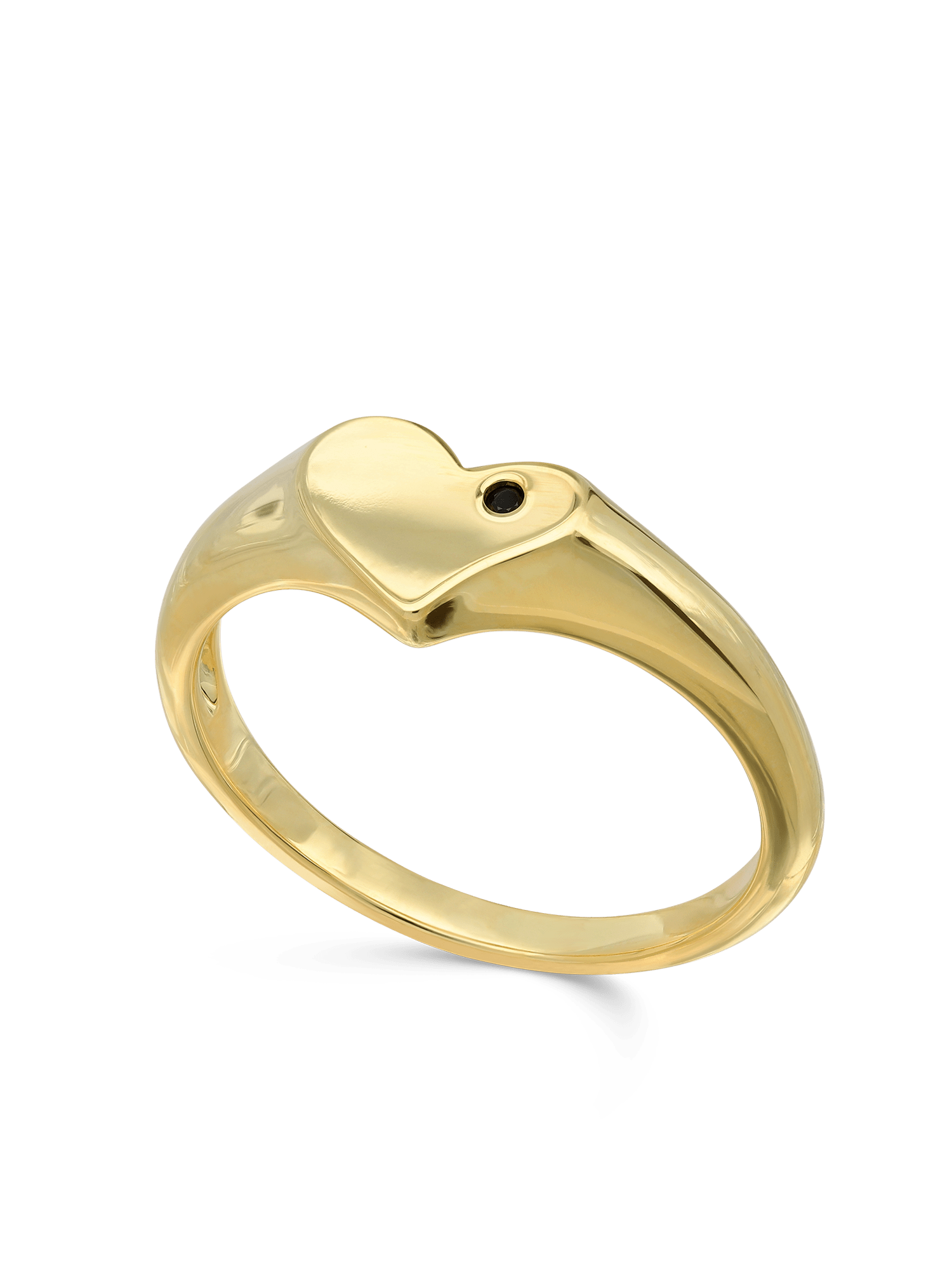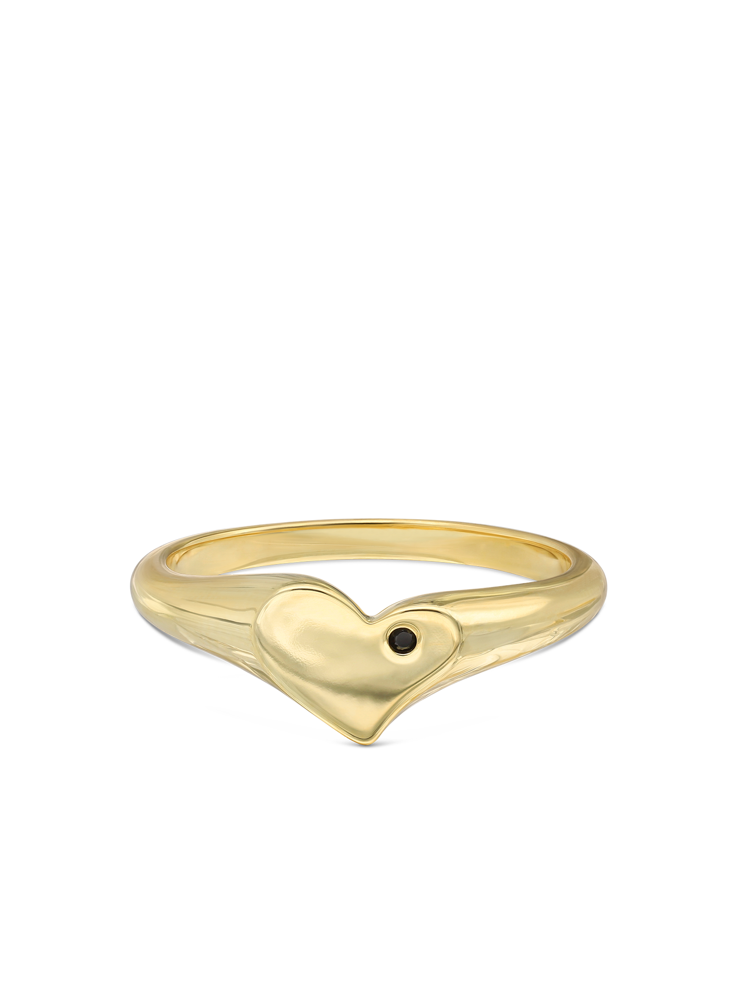 Anillo Delicado, Bañado en oro, Zirconia cúbica artificial, Negro, Corazón, Artificial, Color dorado, 1.63 g