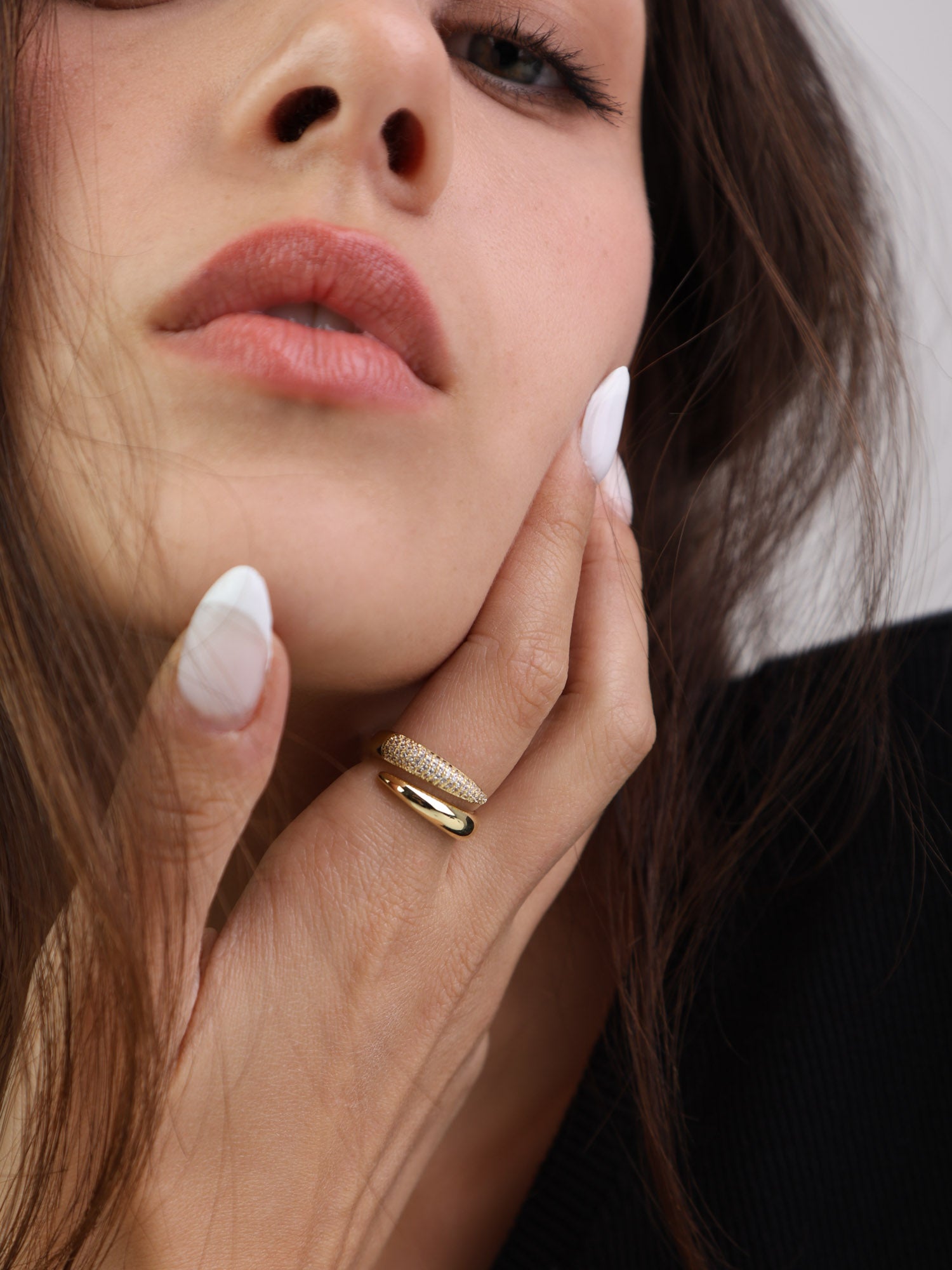 Anillo Delicado, Bañado en oro, Zirconia cúbica artificial