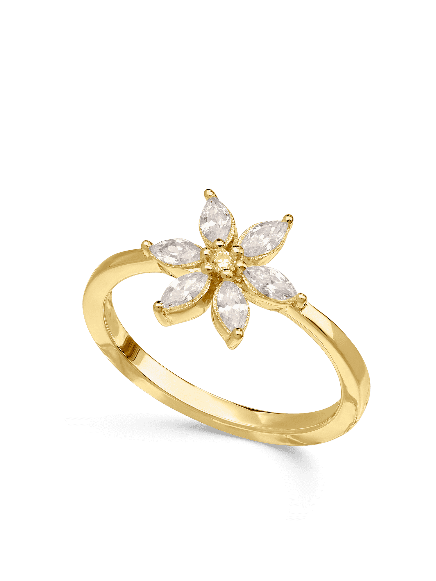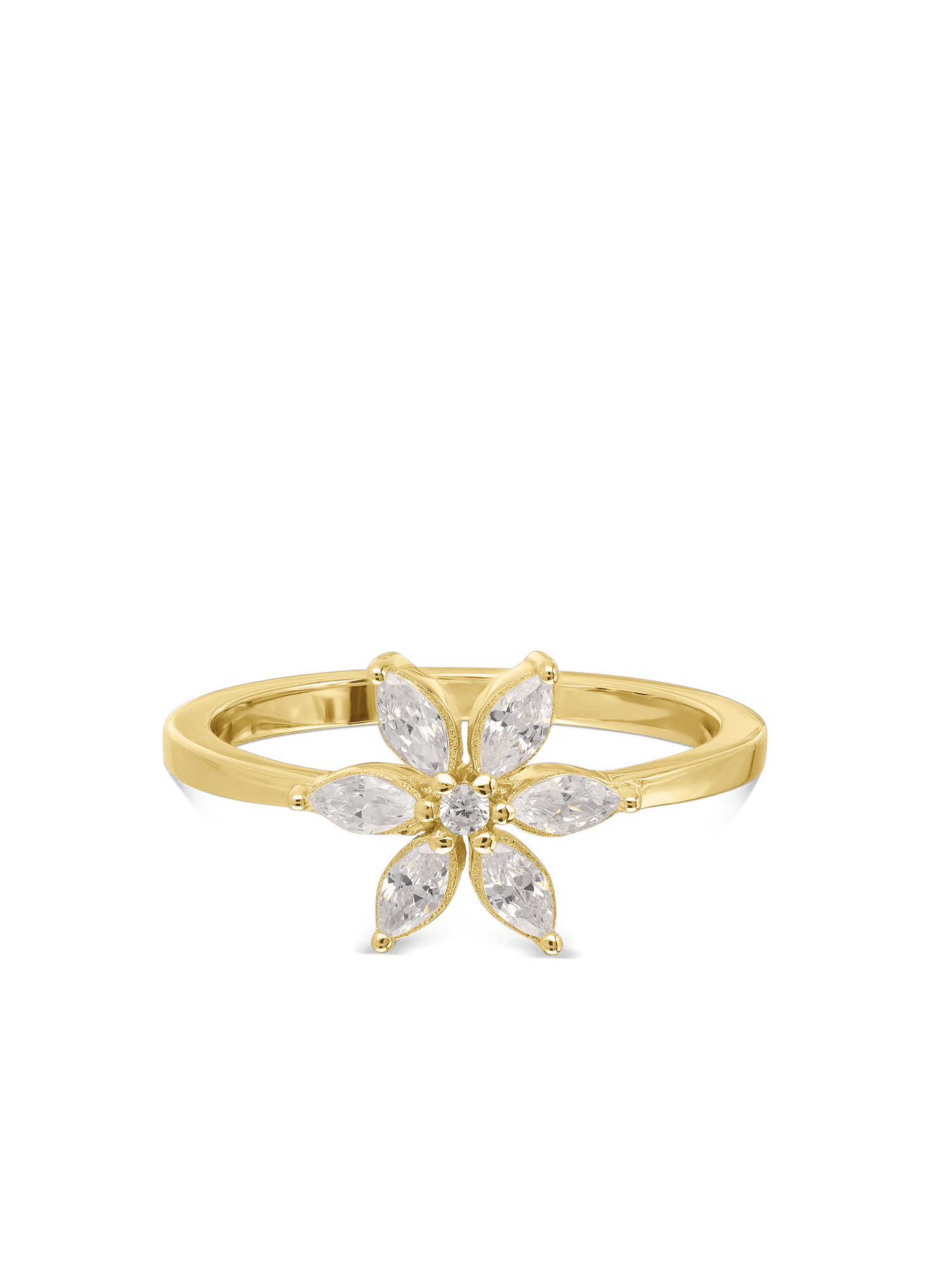 Anillo Delicado, Bañado en oro, Zirconia cúbica artificial, Claro, Flor, Artificial, Color dorado, 1.80 g