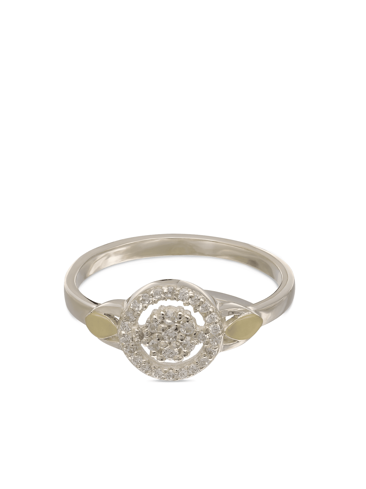 Anillo Delicado, Plata 925 con oro 9k, Zirconia cúbica artificial, Claro, Círculo, Artificial, DOS TONOS, altura del anillo: 2.2 cm, 2.10 g