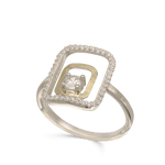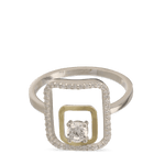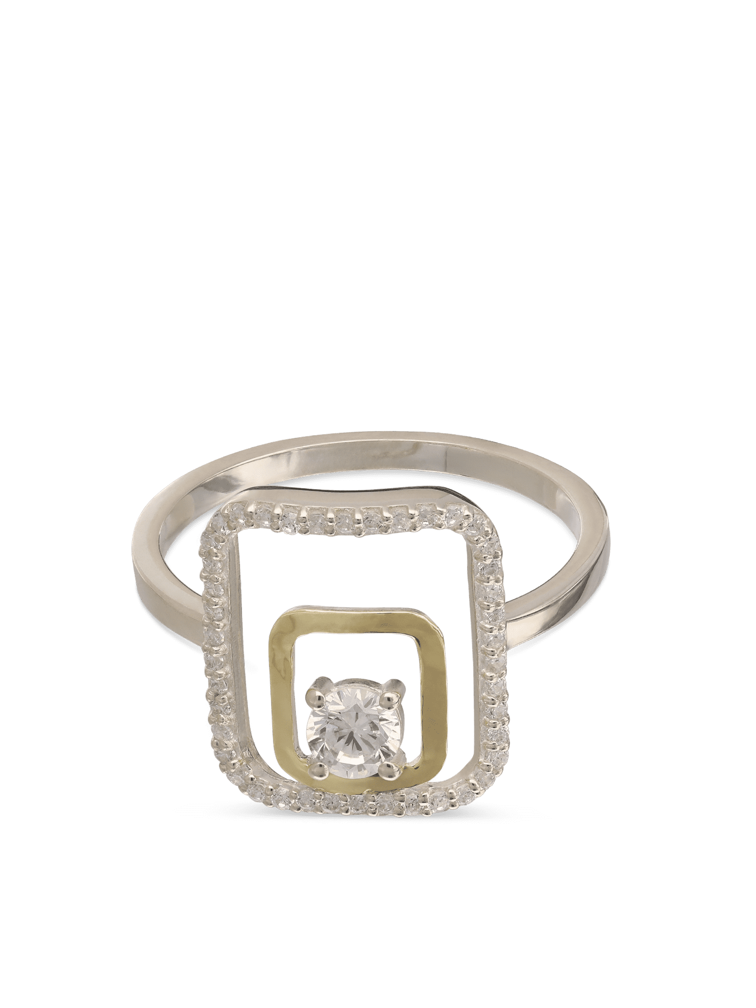 Anillo Delicado, Plata 925 con oro 9k, Zirconia cúbica artificial, Claro, Cuadrado, Círculo, Artificial, DOS TONOS, altura del anillo: 2.4 cm, 2.40 g