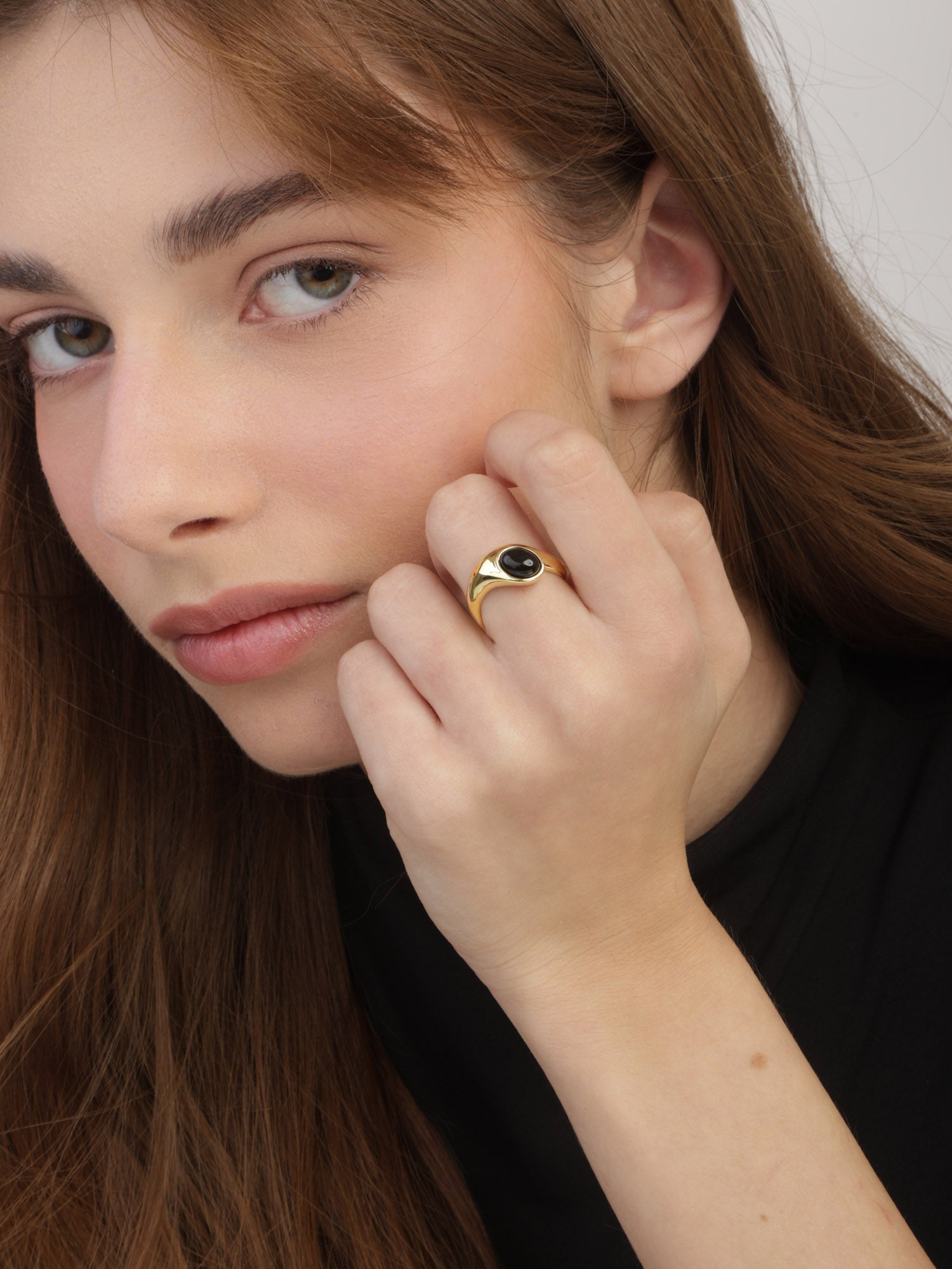 Anillo Delicado, Bañado en oro, Ónix artificial